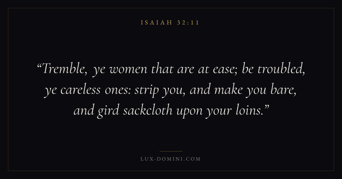 Tremble, ye women that are at ease; be troubled, ye careless ones: strip you, and make you bare, and gird sackcloth upon your loins.