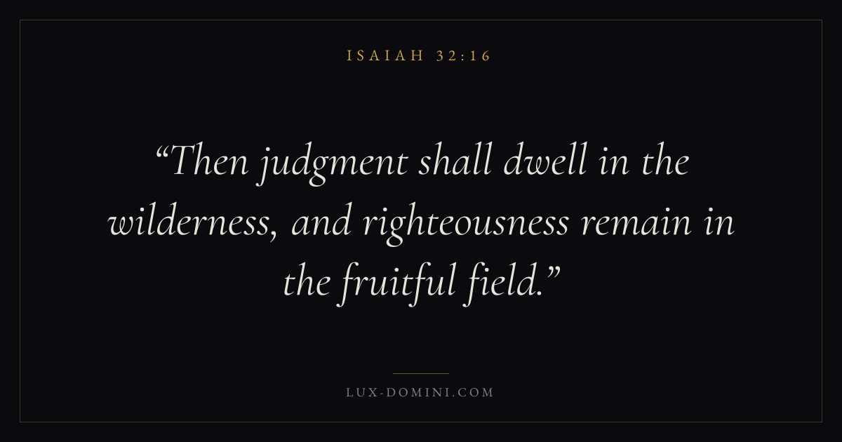 Then judgment shall dwell in the wilderness, and righteousness remain in the fruitful field.