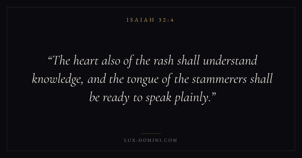 The heart also of the rash shall understand knowledge, and the tongue of the stammerers shall be ready to speak plainly.