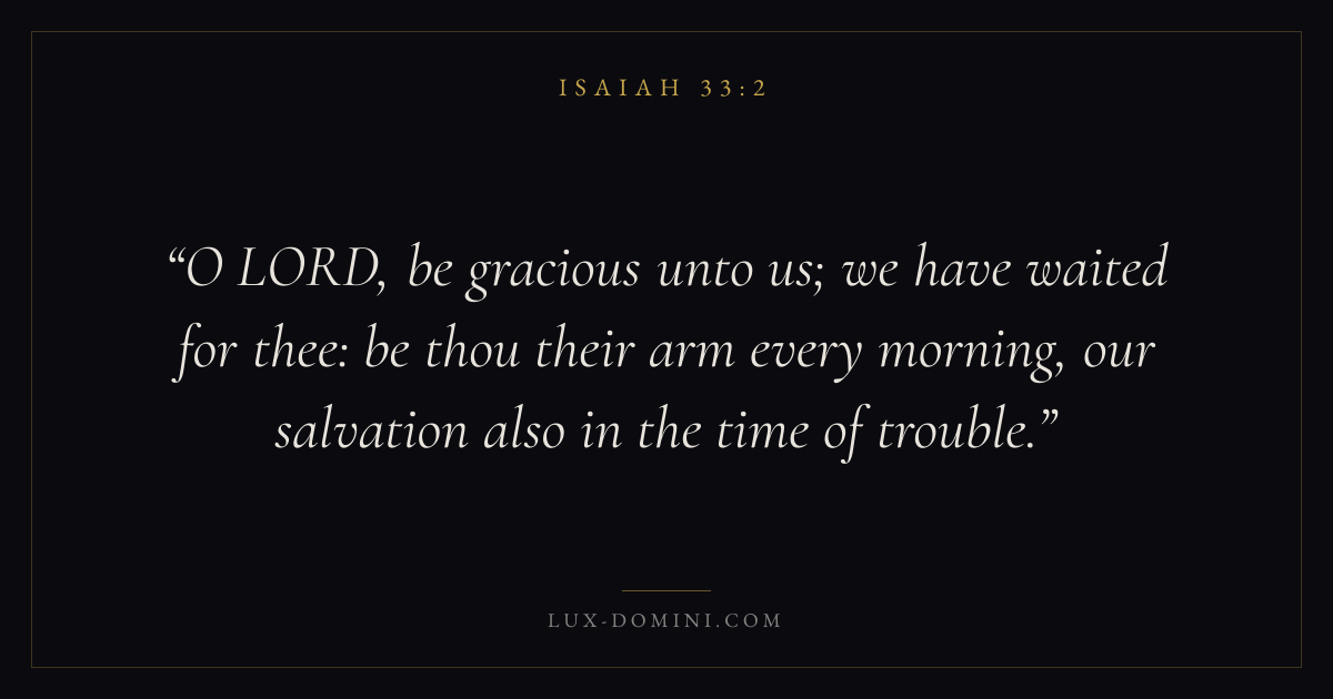 O LORD, be gracious unto us; we have waited for thee: be thou their arm every morning, our salvation also in the time of trouble.