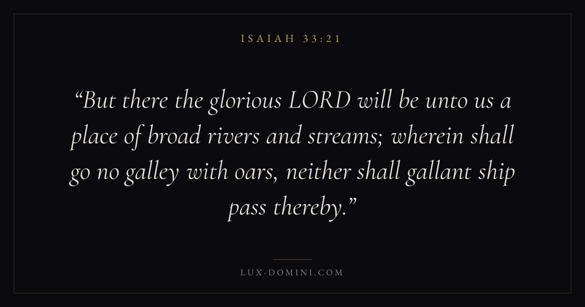 But there the glorious LORD will be unto us a place of broad rivers and streams; wherein shall go no galley with oars, neither shall gallant ship pass thereby.