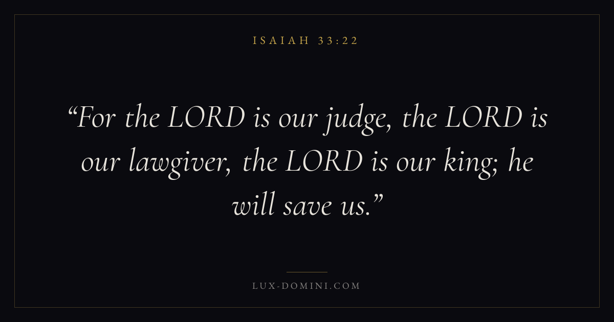 For the LORD is our judge, the LORD is our lawgiver, the LORD is our king; he will save us.