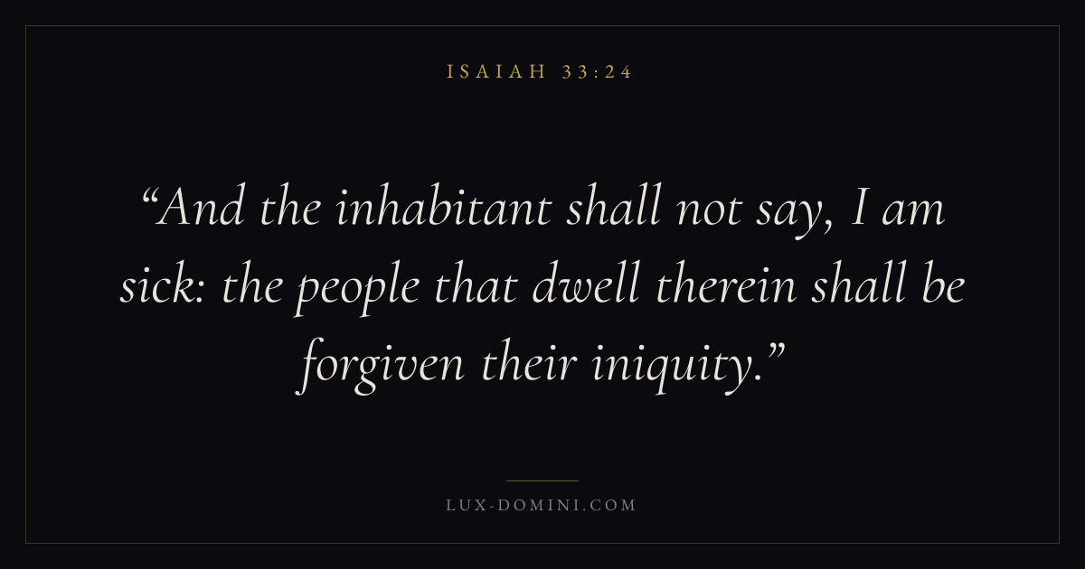 And the inhabitant shall not say, I am sick: the people that dwell therein shall be forgiven their iniquity.
