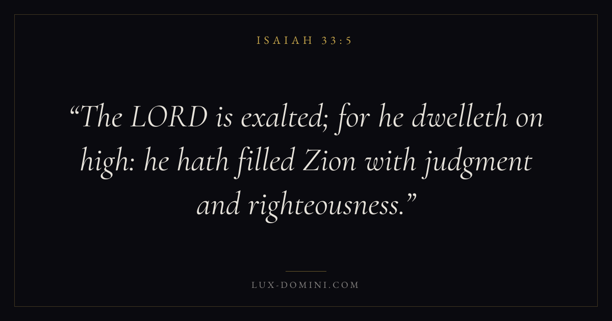 The LORD is exalted; for he dwelleth on high: he hath filled Zion with judgment and righteousness.