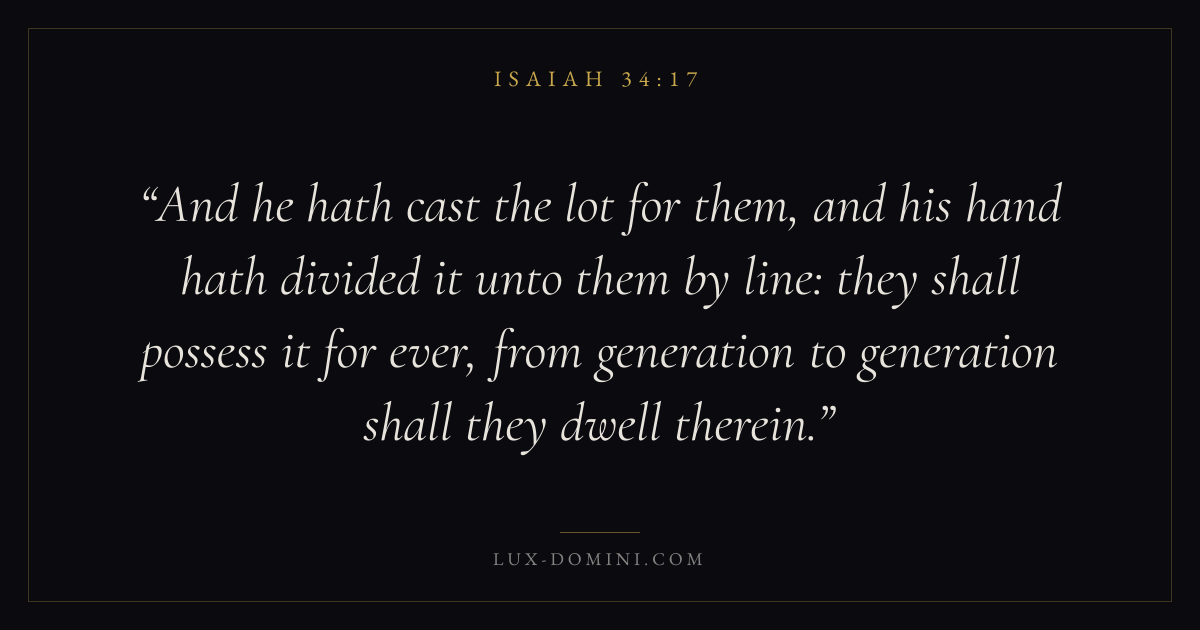 And he hath cast the lot for them, and his hand hath divided it unto them by line: they shall possess it for ever, from generation to generation shall they dwell therein.