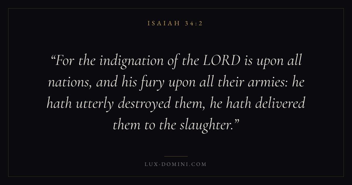 For the indignation of the LORD is upon all nations, and his fury upon all their armies: he hath utterly destroyed them, he hath delivered them to the slaughter.