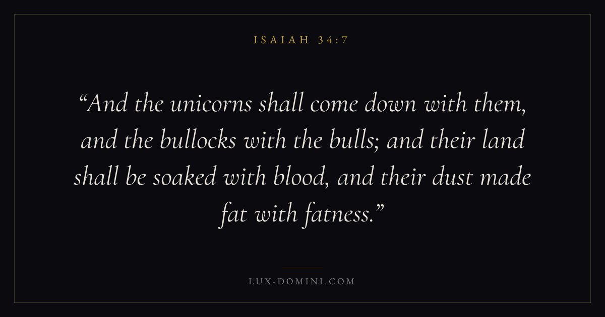 And the unicorns shall come down with them, and the bullocks with the bulls; and their land shall be soaked with blood, and their dust made fat with fatness.