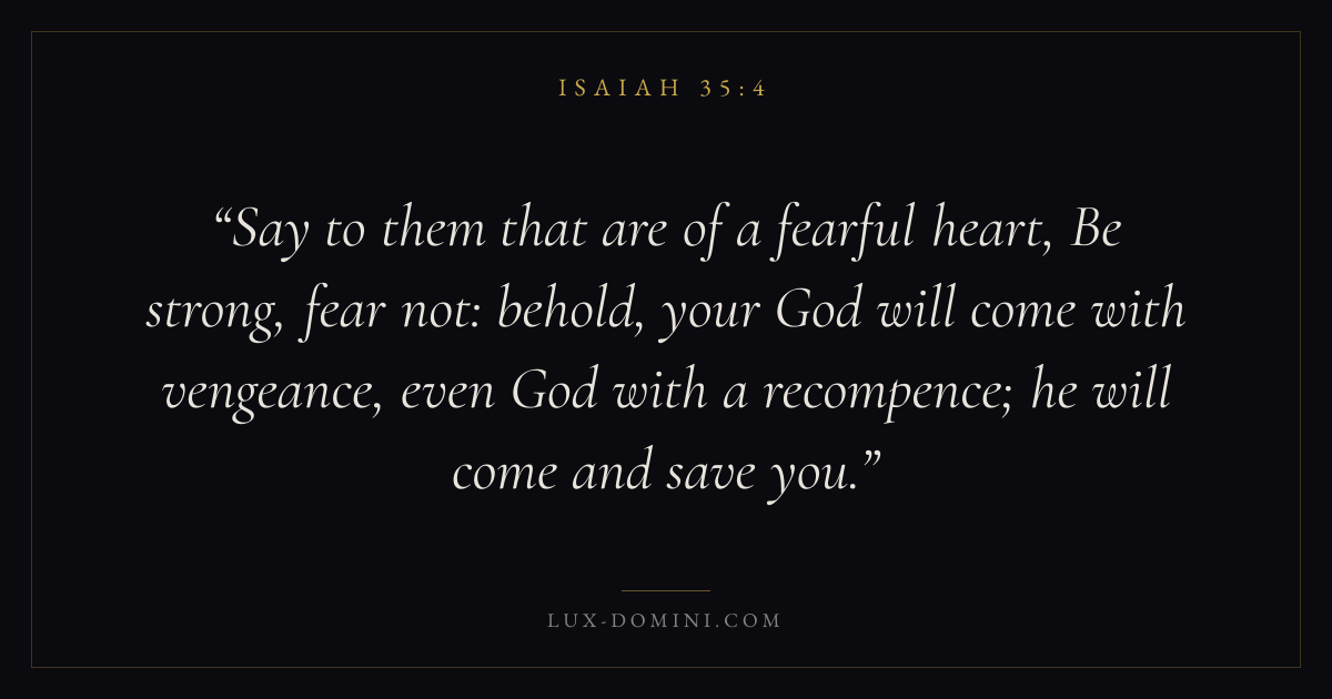 Say to them that are of a fearful heart, Be strong, fear not: behold, your God will come with vengeance, even God with a recompence; he will come and save you.