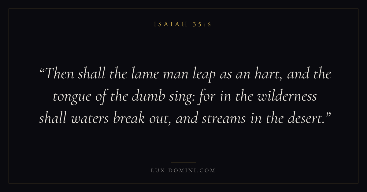 Then shall the lame man leap as an hart, and the tongue of the dumb sing: for in the wilderness shall waters break out, and streams in the desert.