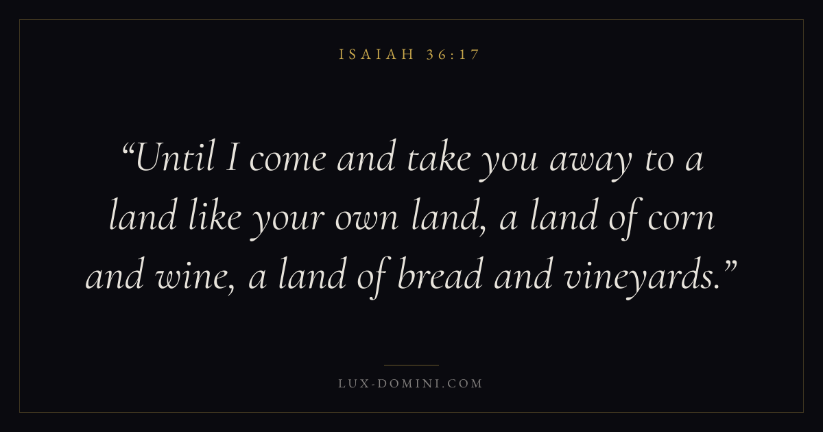 Until I come and take you away to a land like your own land, a land of corn and wine, a land of bread and vineyards.