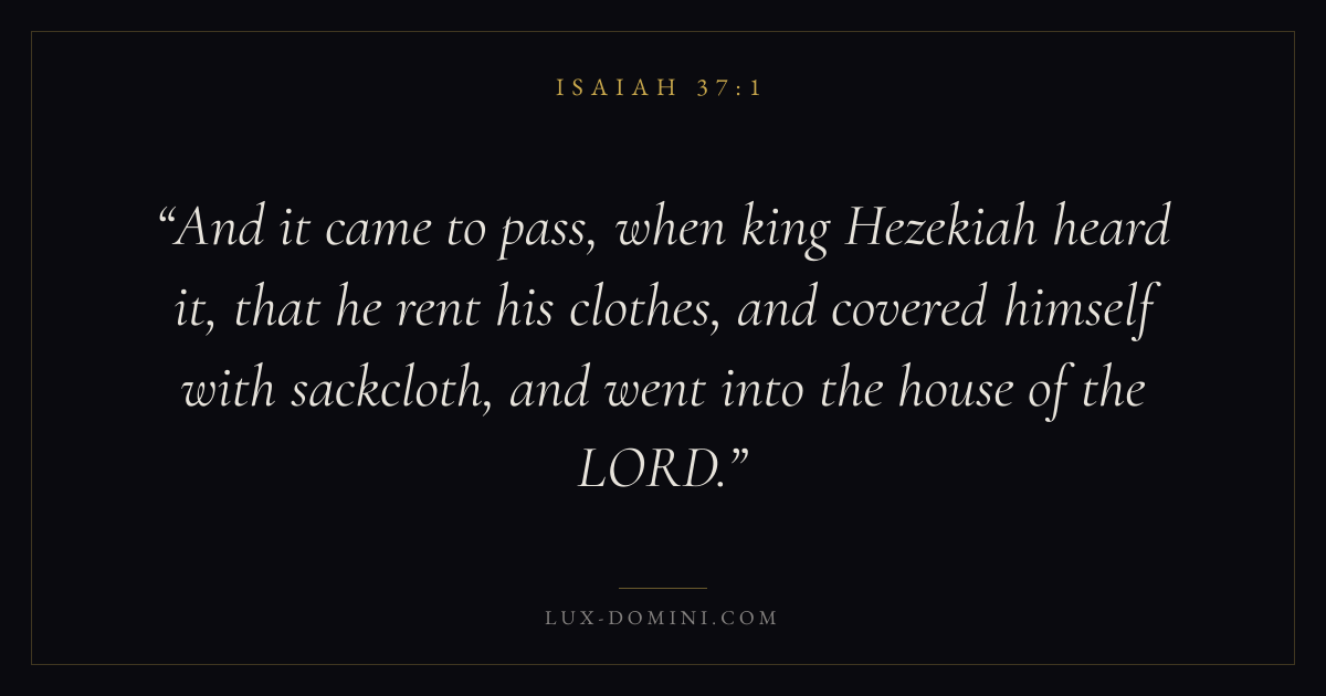 And it came to pass, when king Hezekiah heard it, that he rent his clothes, and covered himself with sackcloth, and went into the house of the LORD.