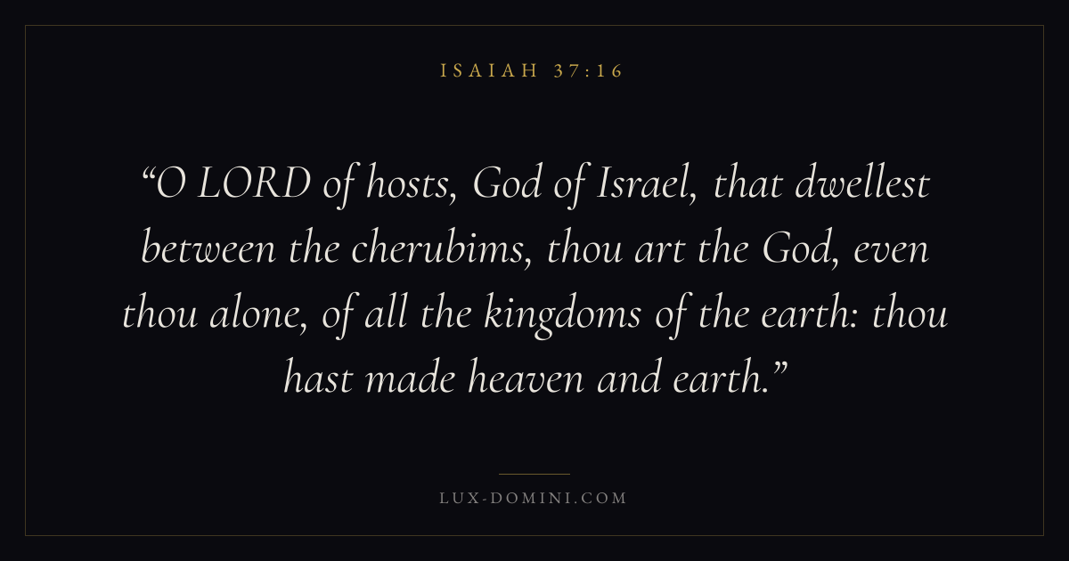 O LORD of hosts, God of Israel, that dwellest between the cherubims, thou art the God, even thou alone, of all the kingdoms of the earth: thou hast made heaven and earth.