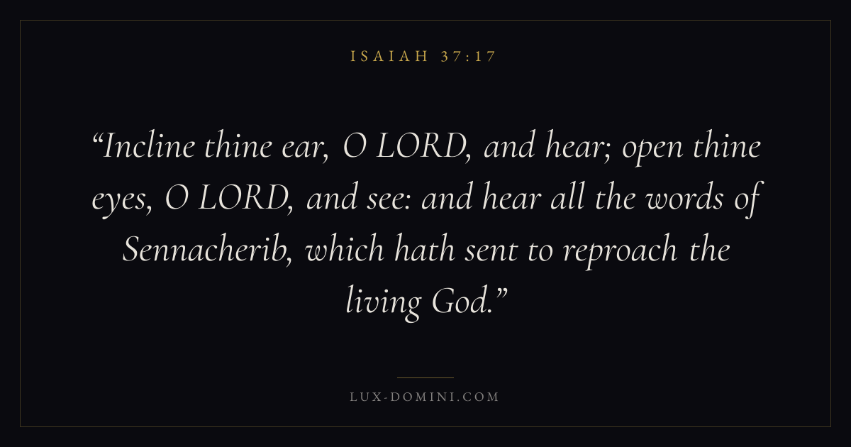 Incline thine ear, O LORD, and hear; open thine eyes, O LORD, and see: and hear all the words of Sennacherib, which hath sent to reproach the living God.