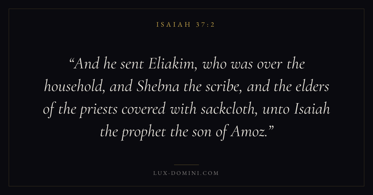 And he sent Eliakim, who was over the household, and Shebna the scribe, and the elders of the priests covered with sackcloth, unto Isaiah the prophet the son of Amoz.