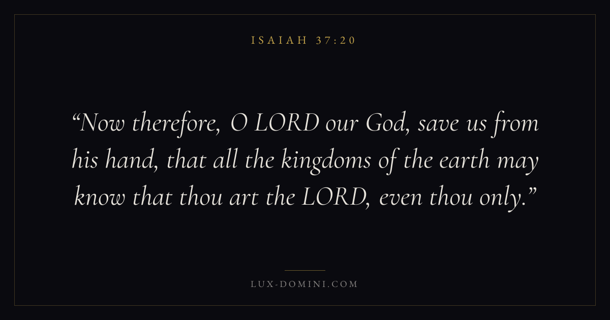 Now therefore, O LORD our God, save us from his hand, that all the kingdoms of the earth may know that thou art the LORD, even thou only.