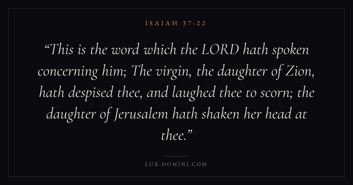 This is the word which the LORD hath spoken concerning him; The virgin, the daughter of Zion, hath despised thee, and laughed thee to scorn; the daughter of Jerusalem hath shaken her head at thee.