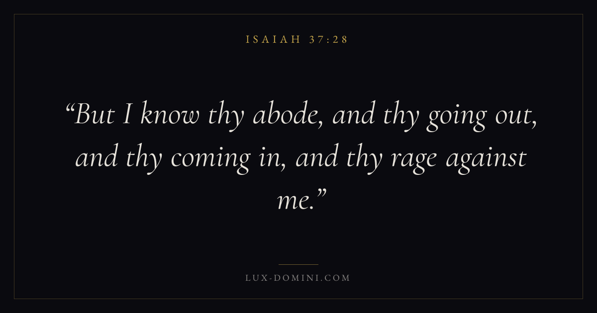 But I know thy abode, and thy going out, and thy coming in, and thy rage against me.