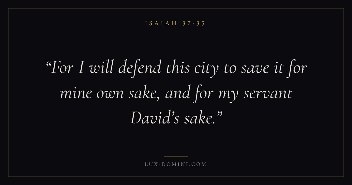 For I will defend this city to save it for mine own sake, and for my servant David’s sake.