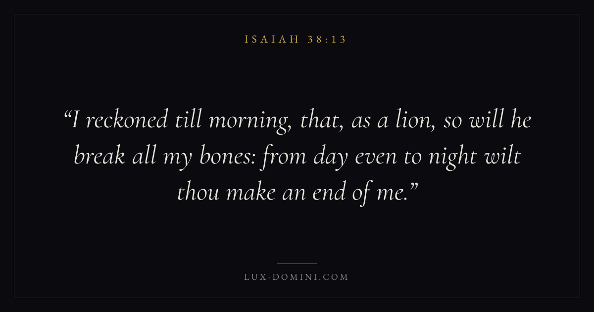 I reckoned till morning, that, as a lion, so will he break all my bones: from day even to night wilt thou make an end of me.