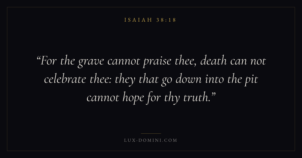 For the grave cannot praise thee, death can not celebrate thee: they that go down into the pit cannot hope for thy truth.
