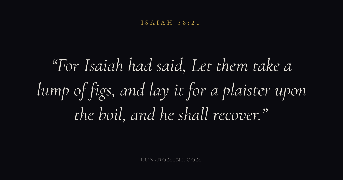 For Isaiah had said, Let them take a lump of figs, and lay it for a plaister upon the boil, and he shall recover.