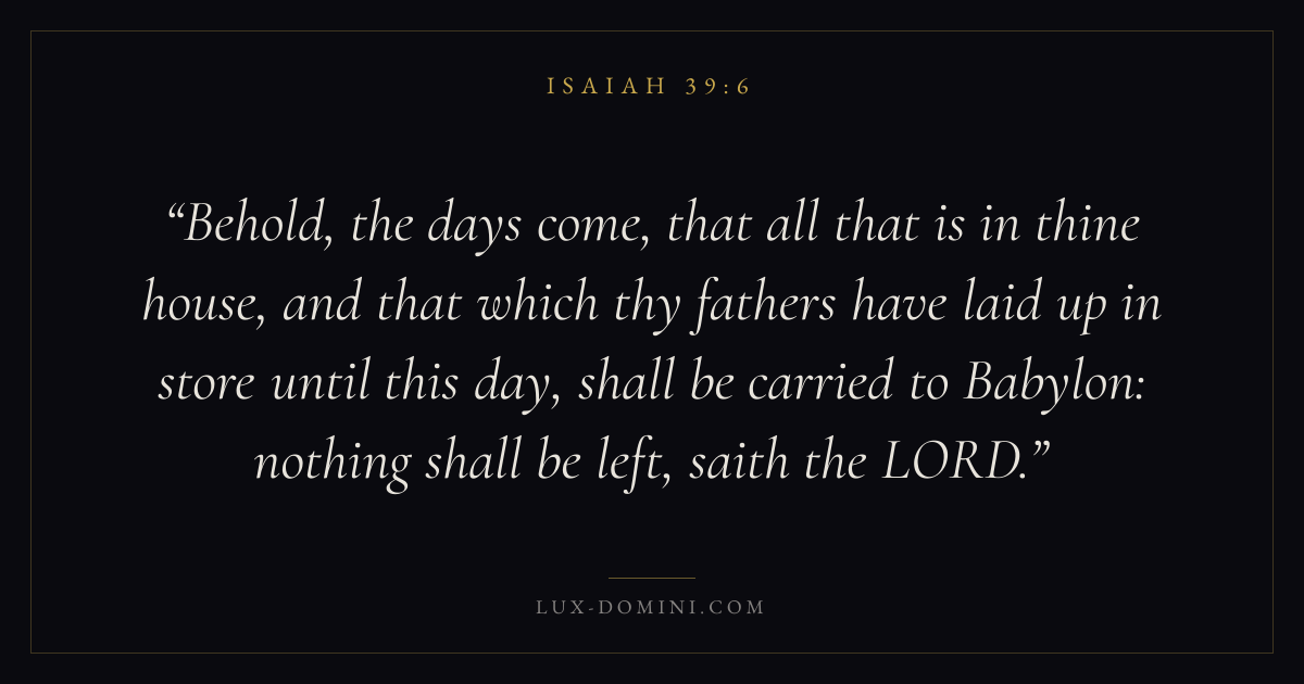 Behold, the days come, that all that is in thine house, and that which thy fathers have laid up in store until this day, shall be carried to Babylon: nothing shall be left, saith the LORD.