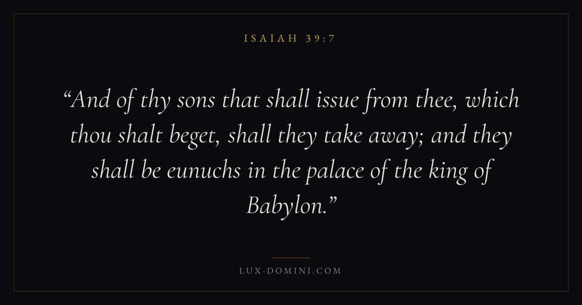 And of thy sons that shall issue from thee, which thou shalt beget, shall they take away; and they shall be eunuchs in the palace of the king of Babylon.