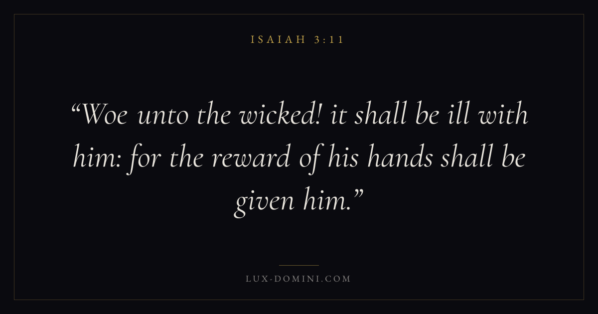 Woe unto the wicked! it shall be ill with him: for the reward of his hands shall be given him.
