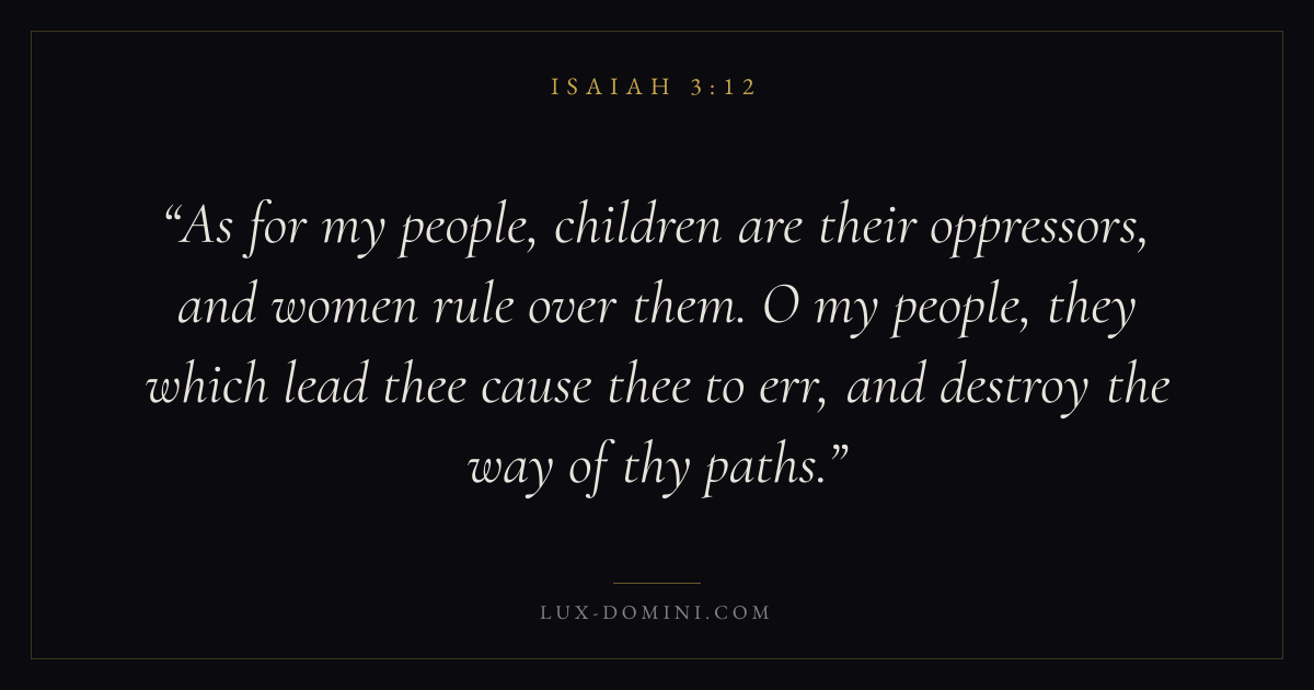 As for my people, children are their oppressors, and women rule over them. O my people, they which lead thee cause thee to err, and destroy the way of thy paths.