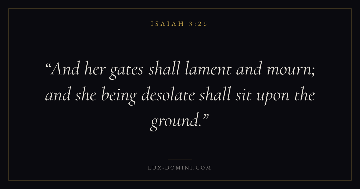 And her gates shall lament and mourn; and she being desolate shall sit upon the ground.