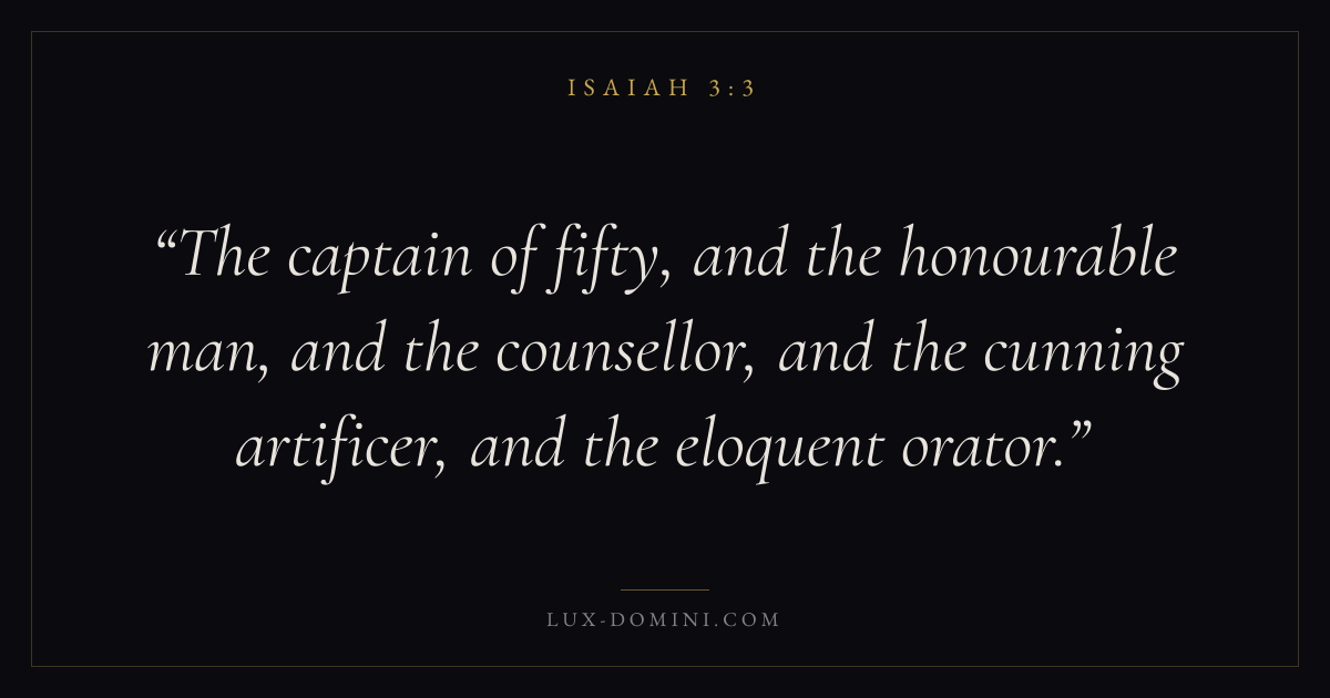 The captain of fifty, and the honourable man, and the counsellor, and the cunning artificer, and the eloquent orator.