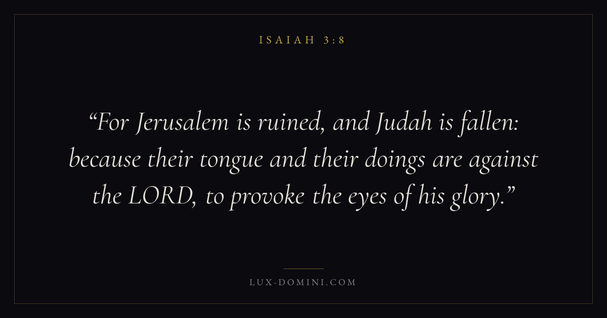 For Jerusalem is ruined, and Judah is fallen: because their tongue and their doings are against the LORD, to provoke the eyes of his glory.