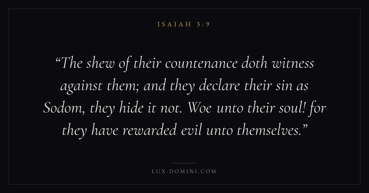 The shew of their countenance doth witness against them; and they declare their sin as Sodom, they hide it not. Woe unto their soul! for they have rewarded evil unto themselves.