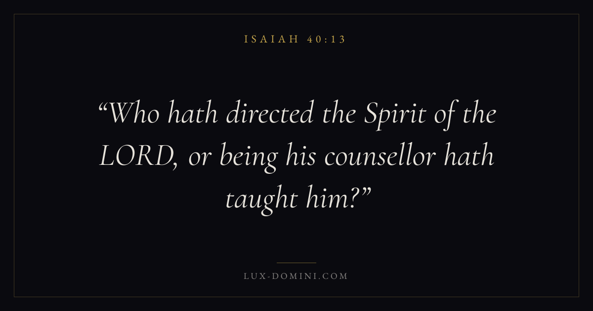 Who hath directed the Spirit of the LORD, or being his counsellor hath taught him?