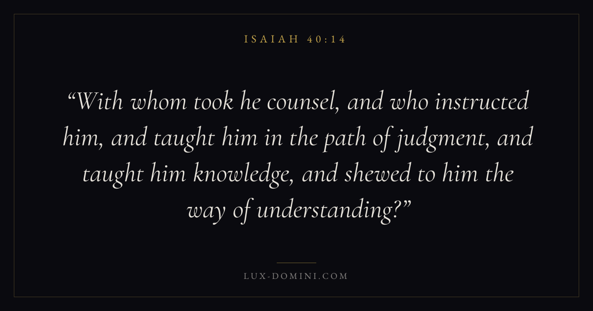 With whom took he counsel, and who instructed him, and taught him in the path of judgment, and taught him knowledge, and shewed to him the way of understanding?