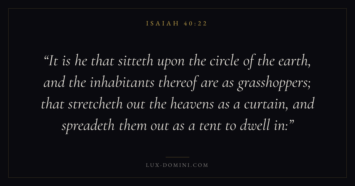It is he that sitteth upon the circle of the earth, and the inhabitants thereof are as grasshoppers; that stretcheth out the heavens as a curtain, and spreadeth them out as a tent to dwell in: