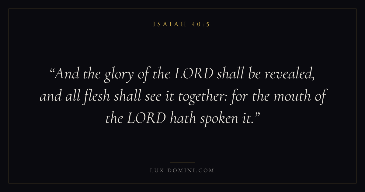 And the glory of the LORD shall be revealed, and all flesh shall see it together: for the mouth of the LORD hath spoken it.