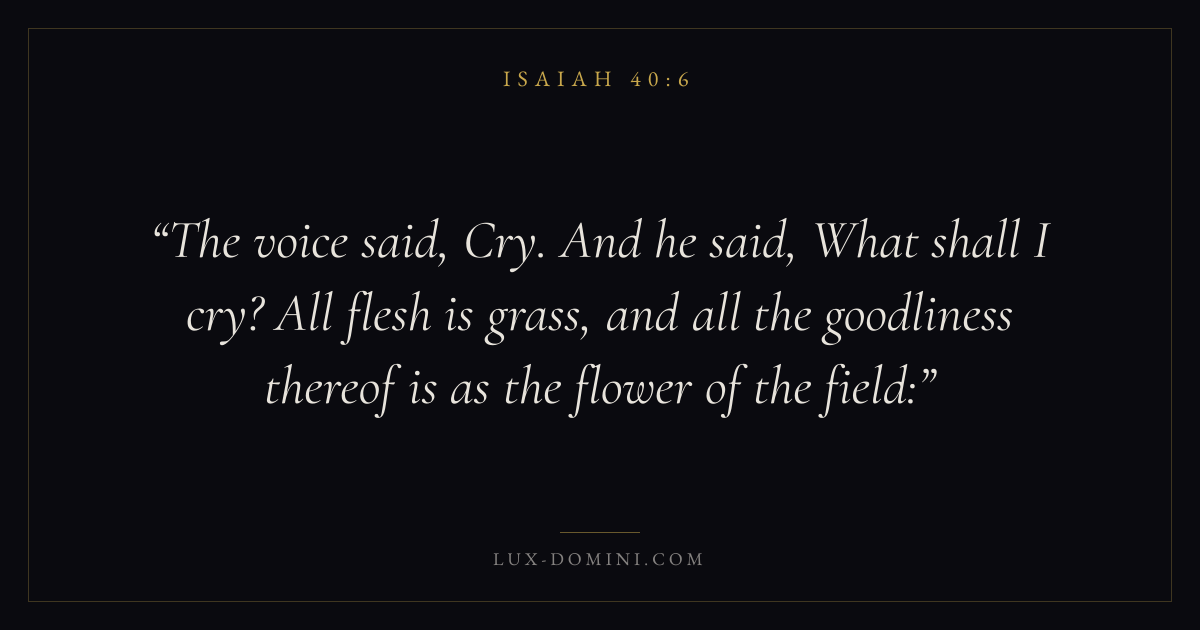 The voice said, Cry. And he said, What shall I cry? All flesh is grass, and all the goodliness thereof is as the flower of the field: