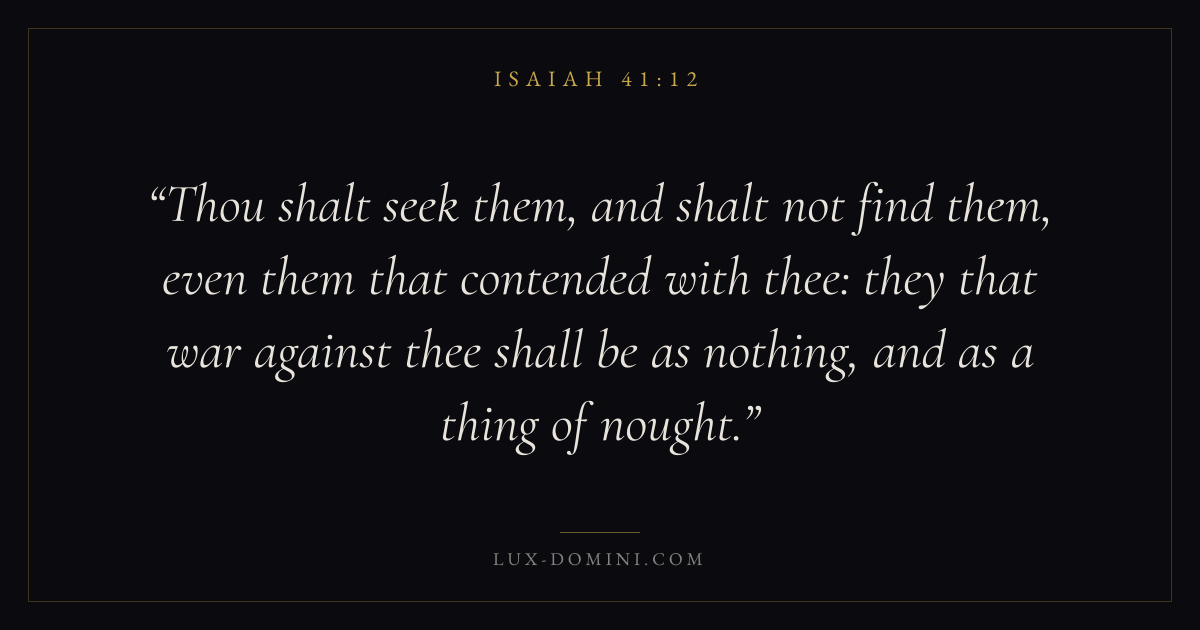 Thou shalt seek them, and shalt not find them, even them that contended with thee: they that war against thee shall be as nothing, and as a thing of nought.