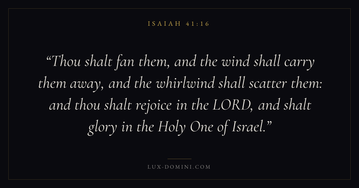 Thou shalt fan them, and the wind shall carry them away, and the whirlwind shall scatter them: and thou shalt rejoice in the LORD, and shalt glory in the Holy One of Israel.