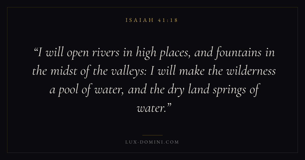 I will open rivers in high places, and fountains in the midst of the valleys: I will make the wilderness a pool of water, and the dry land springs of water.