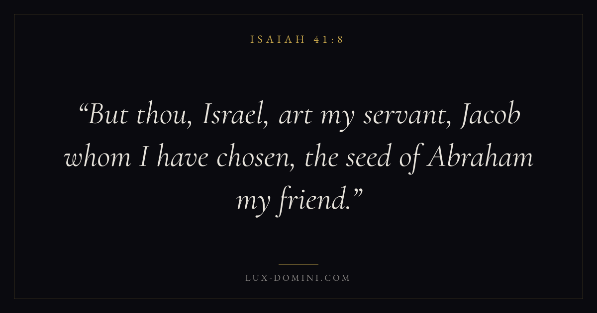But thou, Israel, art my servant, Jacob whom I have chosen, the seed of Abraham my friend.
