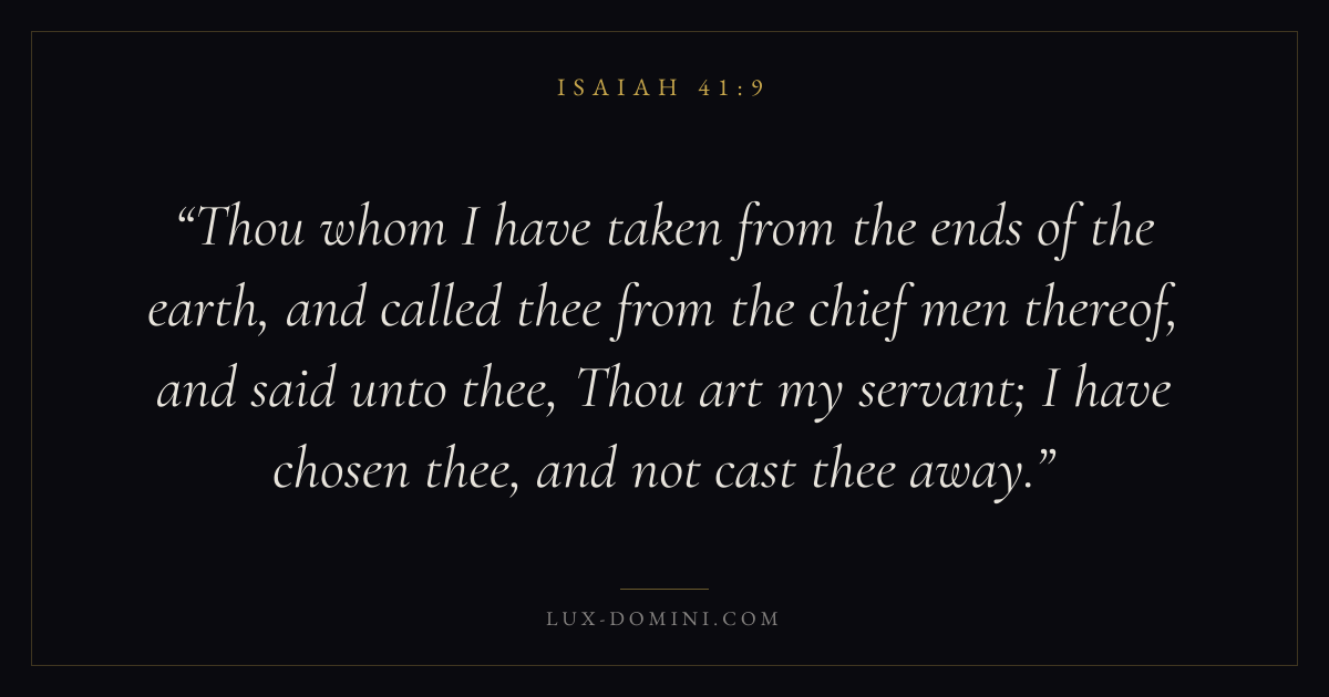 Thou whom I have taken from the ends of the earth, and called thee from the chief men thereof, and said unto thee, Thou art my servant; I have chosen thee, and not cast thee away.