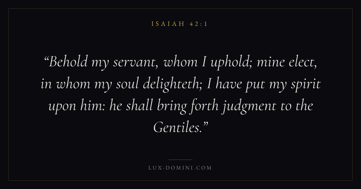Behold my servant, whom I uphold; mine elect, in whom my soul delighteth; I have put my spirit upon him: he shall bring forth judgment to the Gentiles.