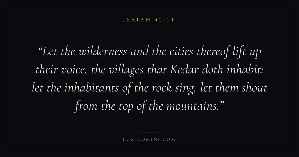 Let the wilderness and the cities thereof lift up their voice, the villages that Kedar doth inhabit: let the inhabitants of the rock sing, let them shout from the top of the mountains.