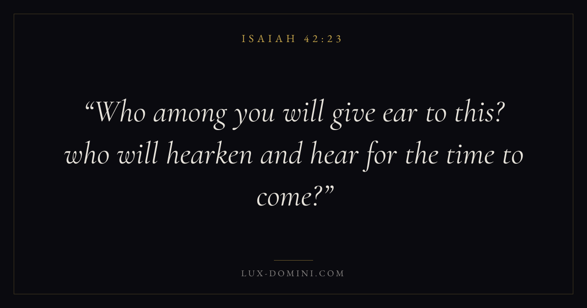 Who among you will give ear to this? who will hearken and hear for the time to come?