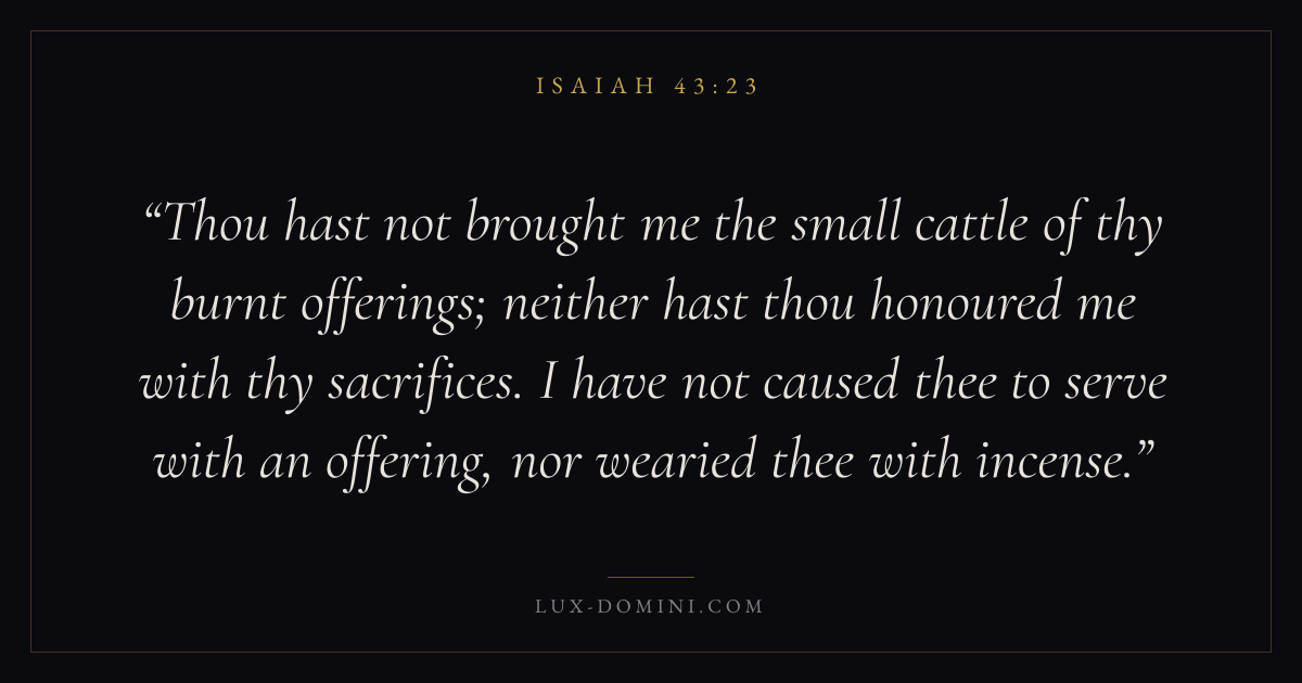 Thou hast not brought me the small cattle of thy burnt offerings; neither hast thou honoured me with thy sacrifices. I have not caused thee to serve with an offering, nor wearied thee with incense.