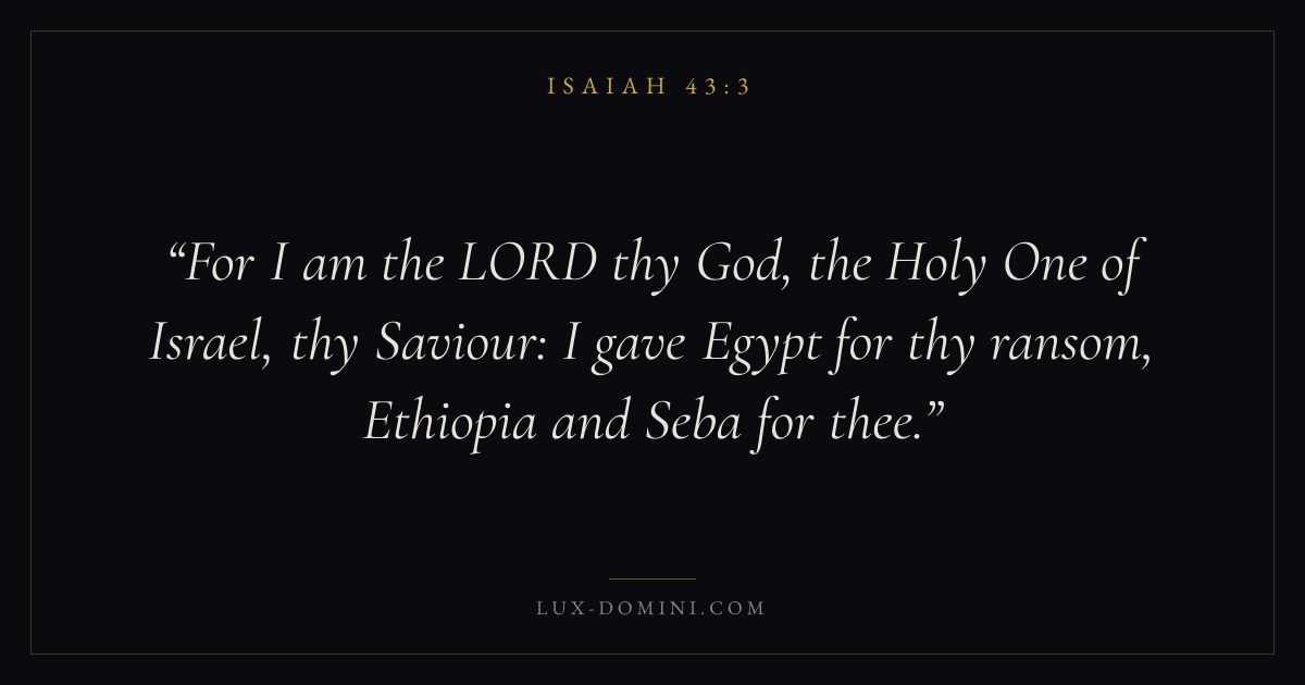 For I am the LORD thy God, the Holy One of Israel, thy Saviour: I gave Egypt for thy ransom, Ethiopia and Seba for thee.