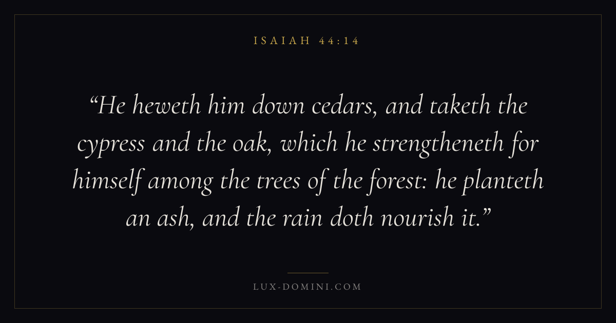 He heweth him down cedars, and taketh the cypress and the oak, which he strengtheneth for himself among the trees of the forest: he planteth an ash, and the rain doth nourish it.