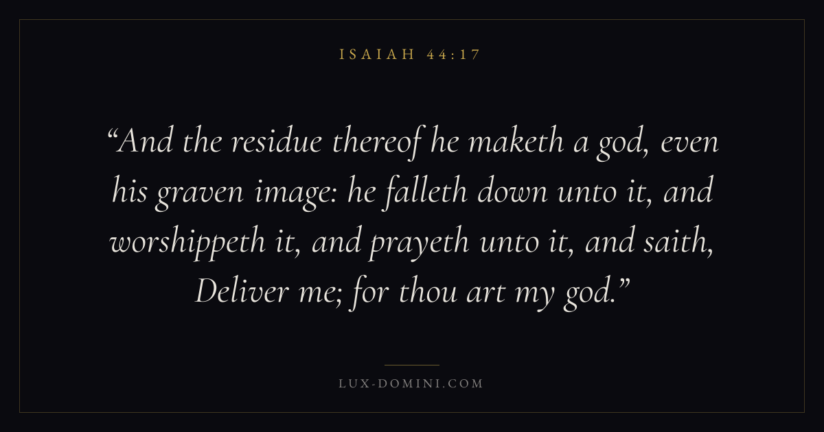 And the residue thereof he maketh a god, even his graven image: he falleth down unto it, and worshippeth it, and prayeth unto it, and saith, Deliver me; for thou art my god.